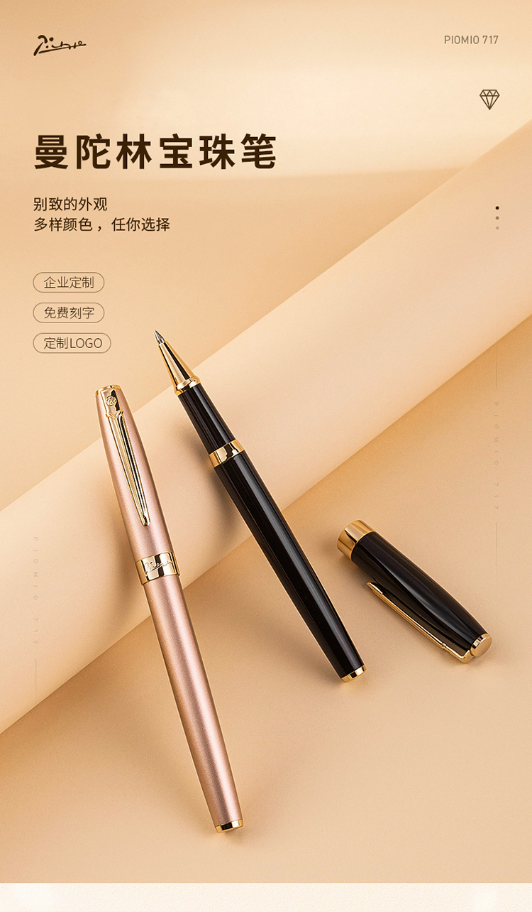 毕加索(PIMIO) 717签字笔莫兰迪色系男女学生练字笔送礼商务办公签单金属宝珠笔公司免费定制刻字 莫兰迪青