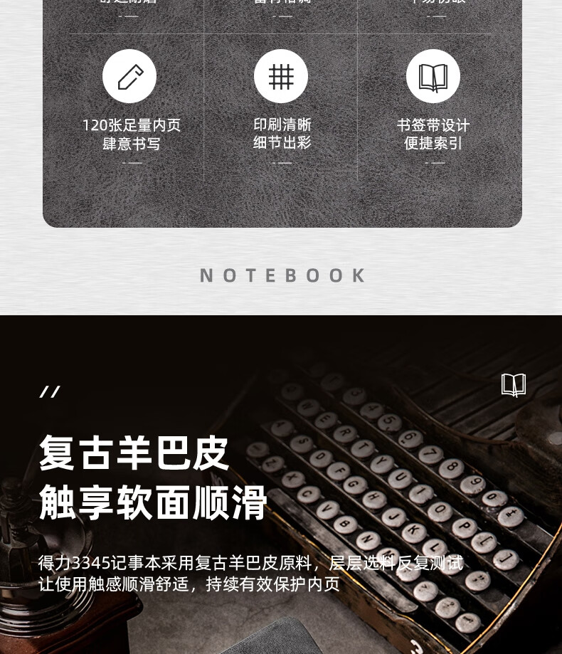 得力(deli)16K/120张羊巴皮笔记本子 加厚软面皮面本记事本日记本办公用品 灰色3345