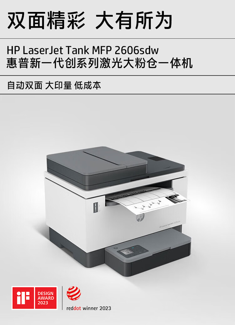 商品名称:惠普(HP)2606sdw激光无线自动双面多功能一体机连续复印扫描 SOHO商用办公单页成本3分钱